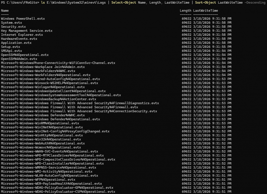 However, the attackers were clearly trying to stay low-profile. The Security log was cleared: