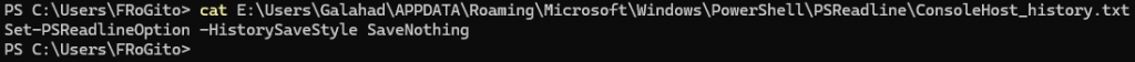 And there is no trace of execution in the interactive PowerShell command history: