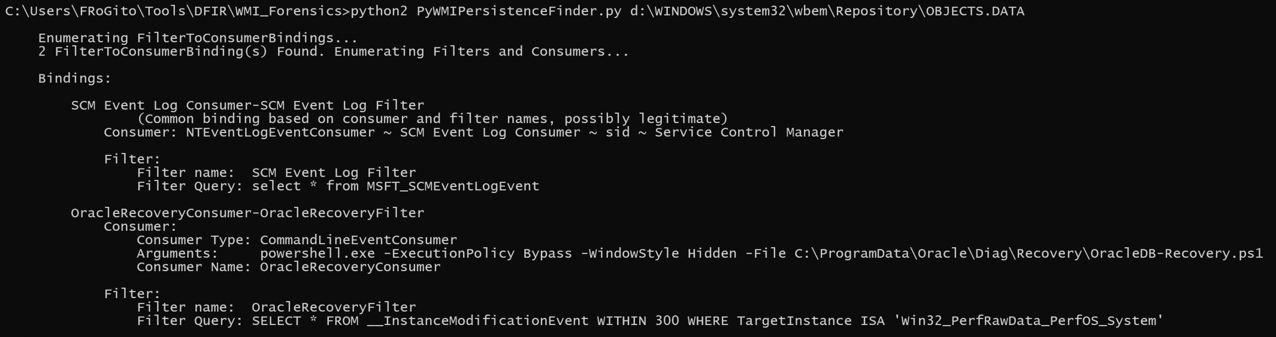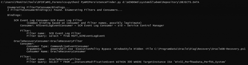 OracleRecoveryConsumersilently executes a PowerShell script whenever the WMI filter is validated.