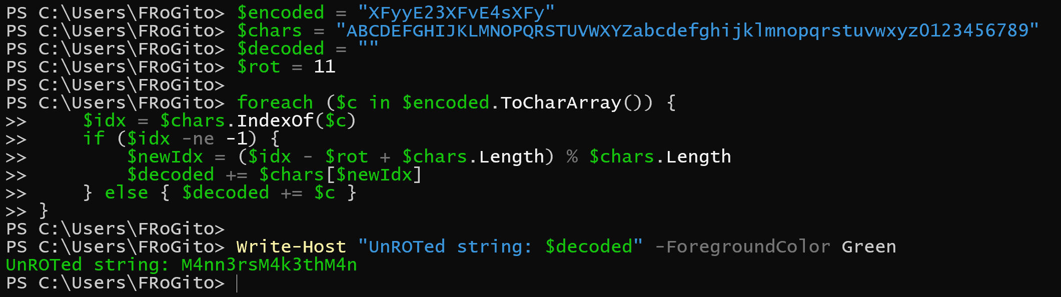 The script pretends to be an Oracle utility, but we quickly realize it is doing suspicious things. It starts by fetching a string called “Seed” from the registry and iterates through this key, character by character, to de-obfuscate it via an 11-character shift on a custom charset: